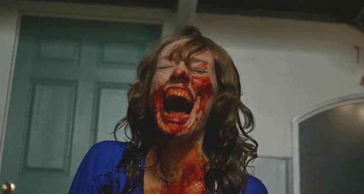一晩中、殺人鬼に追い回され友人達は全員残酷な方法で殺害されるという常軌を逸した経験をしたワケだから、そう簡単に普通の暮らしに戻れるわけが無い。日々、何かの影に怯え、友人達の死を思い罪悪感に駆られ、悪夢にうなされる。映画ではこの陰々滅々としたラストガール=カムリンの生活を淡々と描くことに大半を費やしている。正直、観るのが辛いぐらい暗い。ロボットのように出勤し、ドライクリーニングマシンを放心したまま眺め、退勤後は何かあった時のためにランニング、ぼーっとリモコンを手にチャンネルをザッピングしながらの就寝。そして悪夢で起こされる朝。そして新しい友人と共にやってくる殺人鬼の影。劇中、ほとんど笑顔を見せないカムリンが心から笑う時はあるのだろうか?
