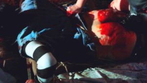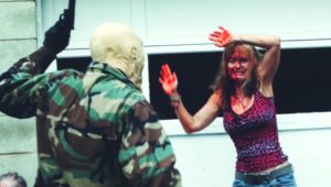 カップルを蹂躙した男たちが、今度は家族を襲っている。父親を撃ち殺すと、母親にその血を胸に塗れと命令する。それを見ながら娘は泣き叫び、その様子を足の指を切り落とされた男が全裸で撮影している。